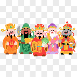 手绘卡通Q版五路财神环绕金蛇插画元素