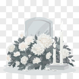 墓碑前摆放着白色菊花和蜡烛免抠元素
