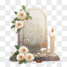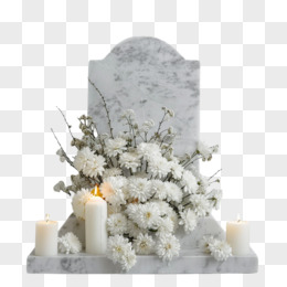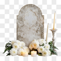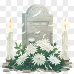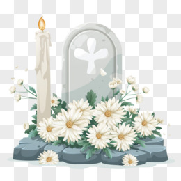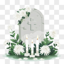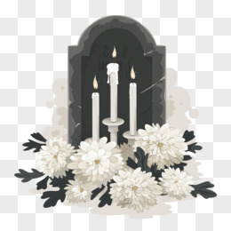 墓碑前摆放着白色菊花和蜡烛免抠元素