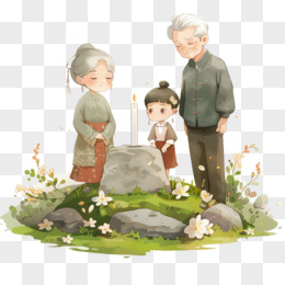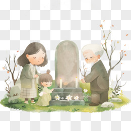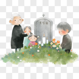 一家人祭拜在坟墓前祭拜清明节免抠元素