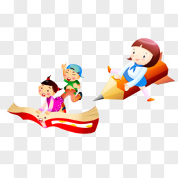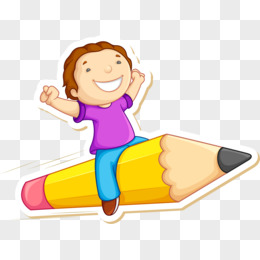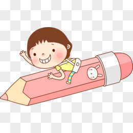 手绘卡通小女孩坐在铅笔上面口苏词啊