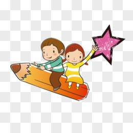 卡通骑铅笔骑铅笔的小女孩免抠素材