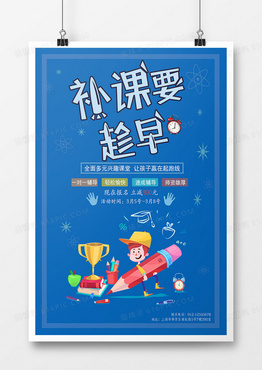 深蓝色红铅笔开心写字男孩简约风商业教育海报