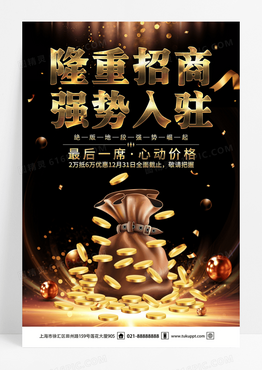 黑金钱袋简约创意大气时尚招商宣传海报招商招租