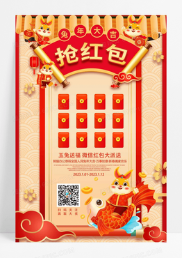 新年红包墙兔年喜庆抢红包扫码活动海报
