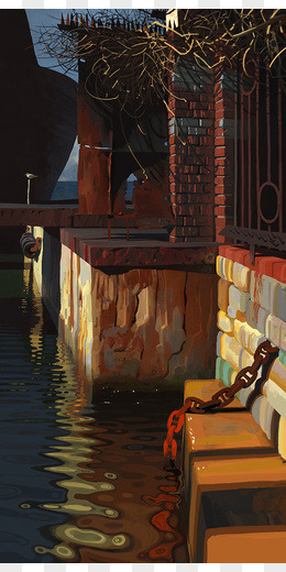 景深效果墙面小桥