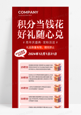 红色积分当钱花好礼随心兑积分兑换宣传说明长图