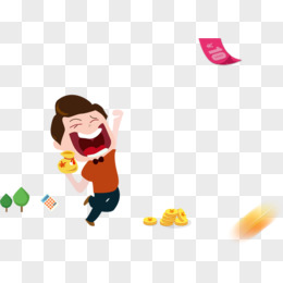 卡通一个穿着二蓝裙子的女孩拿着一叠钱买买买免抠元素