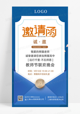 蓝色简约远行千里不忘师恩教师节邀请函手机文案海报