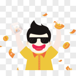 手绘卡通坐沙发有钱人土豪数钞票元素