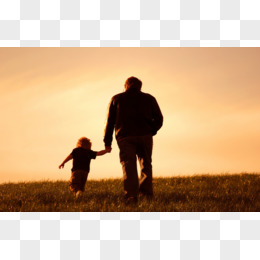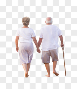 金色剪影一对老年夫妇手牵手走路背影免抠元素