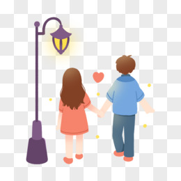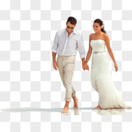 3D卡通一对年轻情侣在海边手牵手散步免抠元素
