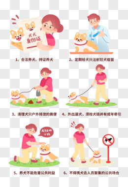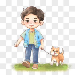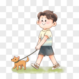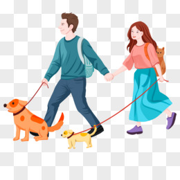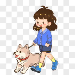手绘插画风闺蜜一起遛狗场景免抠素材