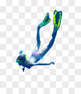 一组创意蓝色水纹潜水员剪影人物装饰素材