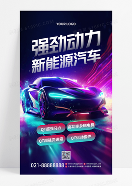 渐变创意强劲动力新能源汽车科技汽车AI摄影图宣传手机海报