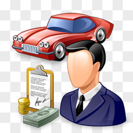 3D卡通男人拿着放大镜站在汽车旁看文件免抠元素