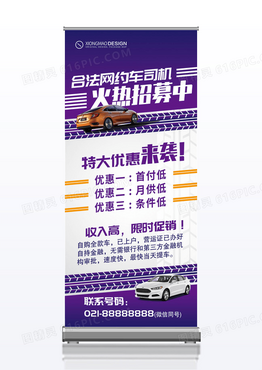 紫色简洁简约合法网约车司机火热招募中易拉宝展架