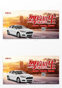 简约摄影合成城市天空汽车道路背景驾校招生报名宣传展板