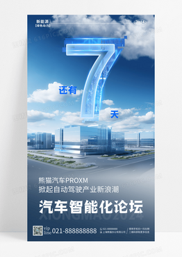 蓝色插画汽车论坛倒计时7天手机宣传海报