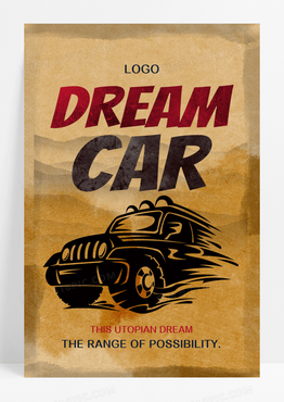 黄色剪影手绘汽车企业海报设计
