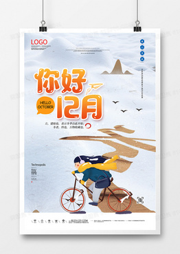 十二月你好卡通宣传海报模板设计