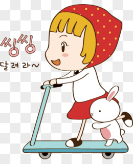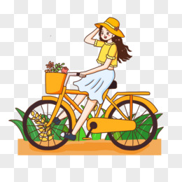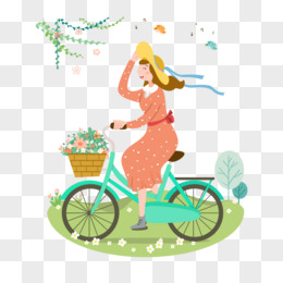手绘卡通女孩骑车春游免抠元素