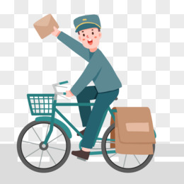 手绘卡通邮递员骑车送信素材