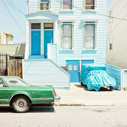 街道汽车房屋蓝色背景