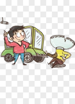 卡通汽车男人和保险单免抠元素