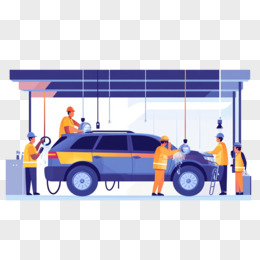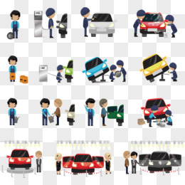 平面插画一群洗车店工人清洁汽车免抠元素