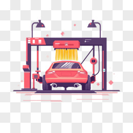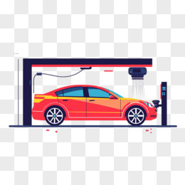 平面插画汽车在自助洗车机洗车免抠元素
