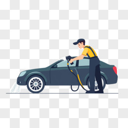 平面插画工作人员在拿水枪洗车免抠元素