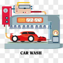 3D自助洗车冲刷清洗的黄色车辆免抠AI元素