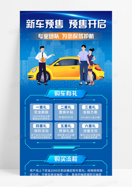 蓝色渐变商务新车预售矢量插画营销长图