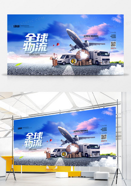 大气全球物流快递服务物流公司宣传展板设计