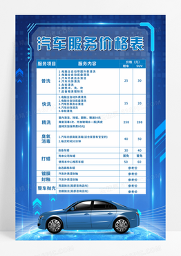 蓝色几何线条背景汽车服务价格表洗车价格表
