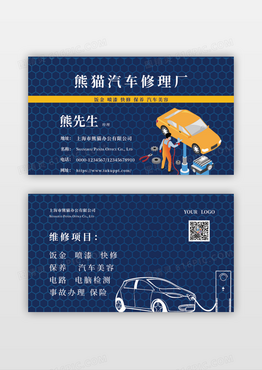 蓝色汽车修理厂名片设计