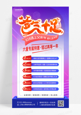 蓝紫渐变3D爸气大促地产行业父亲节手机文案海报