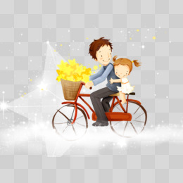 手绘卡通双人骑行运动免抠元素