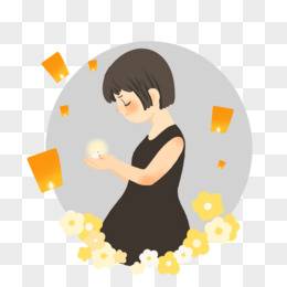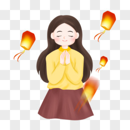 手绘卡通女孩手捧蜡烛祈福免抠素材