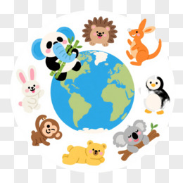 九只可爱动物环绕地球仪卡通手绘元素