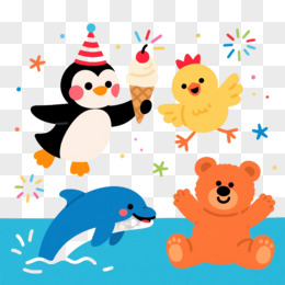 彩色动物派对扁平插画元素