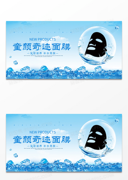 蓝色简约清爽童颜奇迹面膜宣传展板