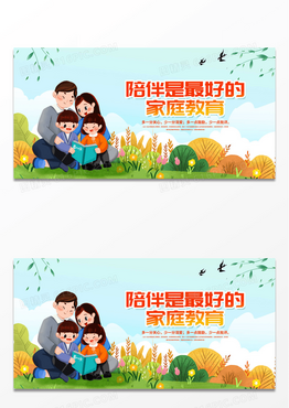 手绘插画风一家四口亲子背包出行游玩其乐融融元素