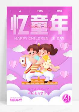 六一儿童节小朋友骑木马玩耍礼物糖果庆祝画笔画画