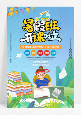 蓝色勤奋学习创意暑假班开课了教育培训海报