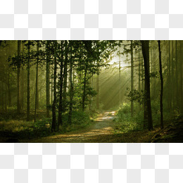 清晨阳光透过幽静山林