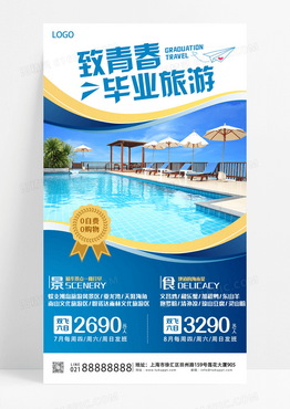 蓝色简约致青春毕业旅游手机文案海报设计毕业季旅游
