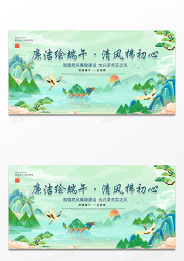 简约时尚国潮廉洁绘端午清风拂初心宣传展板