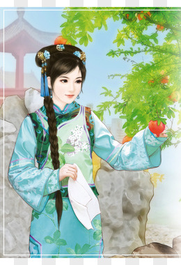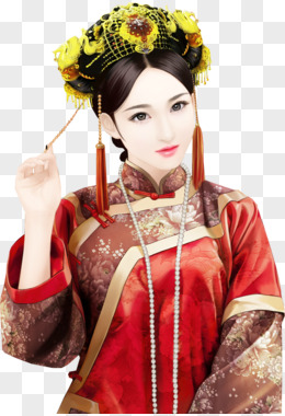 一组手绘卡通清宫人物形象套图之福晋免抠元素
